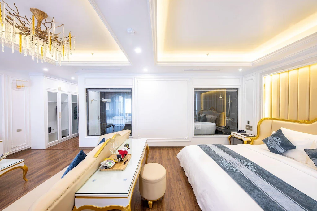 • Đặc biệt, hạng Executive Suite độc đáo với nội thất dát vàng 24K và gỗ gõ trăm năm tuổi, mang đẳng cấp “ông hoàng bà chúa”.