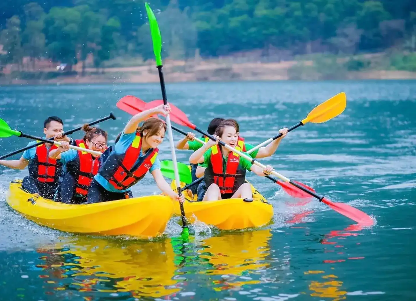 • Bể bơi riêng tư: Bể bơi ngoài trời sạch sẽ, nơi bạn có thể ngâm mình thư giãn và ngắm nhìn cảnh sắc hồ Đồng Đò.