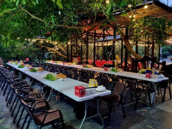 Không gian sự kiện: Sân vườn rộng lớn, thảm cỏ xanh mướt là nơi hoàn hảo để tổ chức Team Building, đốt lửa trại hoặc tiệc nướng BBQ ngoài trời.